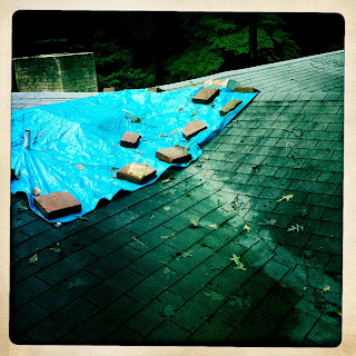 What’s more, MHTP (my husband the photographer) had performed some kind of triage – involving a blue tarp and bricks – on the leaky roof, so that by the time the torrential downpour hit, a big puddle of water no longer formed on the kitchen counter exactly where we charge our iPhones.  Puddles did form elsewhere on the kitchen counter, and also on the kitchen floor, but our iPhones were not charging in those places.